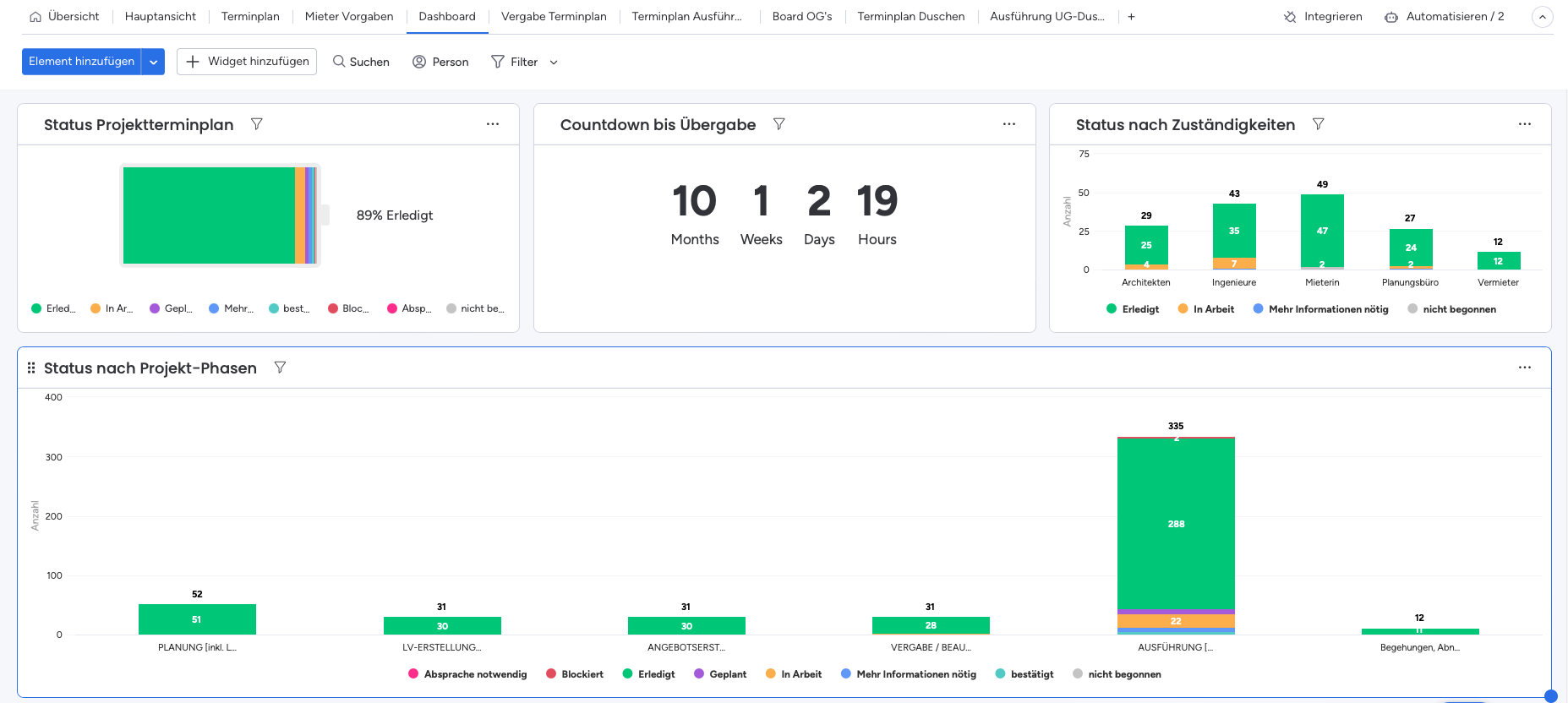 Ein effektives und transparentes Reporting ist entscheidend, um den Überblick über den Fortschritt eines Projekts zu behalten und fundierte Entscheidungen zu treffen. Unser Reporting ist transparent und wird nach individuell definierten Parametern automatisch zu den gewünschten Zeitpunkten erstellt. Wir stellen Ihnen Benutzerdefinierte Dashboards, die genau auf die Bedürfnisse Ihres Projekts zugeschnitten sind zur Verfügung. Umfassende Überblicke über den Status, die Ressourcen, den Zeitplan und die Kosten liegen Ihnen offen. Dabei sind wir von Anwesenheit und Auslastungsengpässen des Projektteams entkoppelt und können ihnen jederzeit den aktuellen Status ihres Projektes anzeigen.